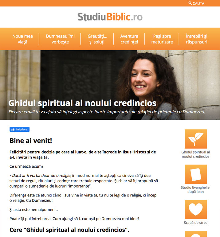 P.S. Dacă nu ești interesat de “Ghidul spiritual”, te rog vizitează www.studiubiblic.ro un alt site interactiv pe care l-am construit special pentru a te ajuta să dezvolţi relaţia ta nouă cu Iisus Hristos.